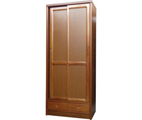前面に天然木をふんだんに使用した引戸タイプの書棚。低ホルムアルデヒドの健康仕様