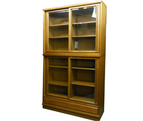 高さ2m、引戸タイプの扉付き書棚。ガラスは全面に飛散防止ガラスを使用。