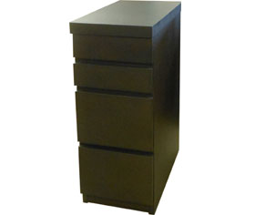スリムだけど奥行のあるチェスト。下2段の引き出しは、DVDやCDの背表紙が見えるように収納ができます。