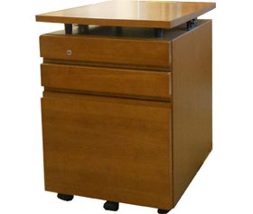 天板昇降式のワゴン。下段の大引き出しはA4ファイルが収納可能です。