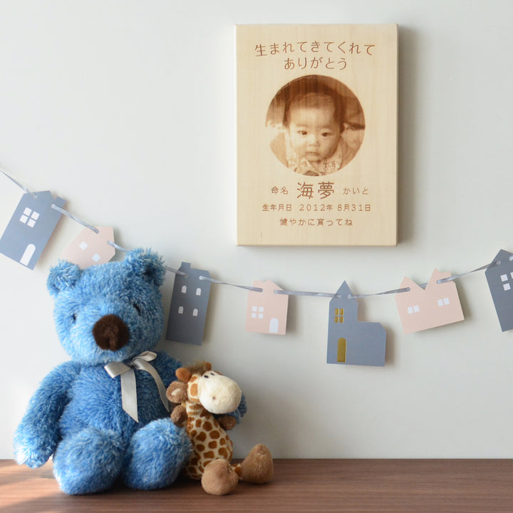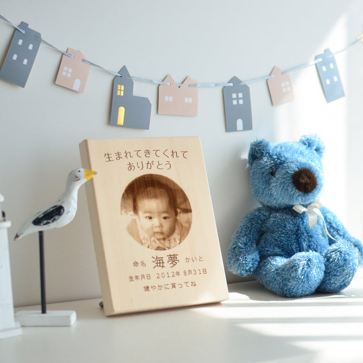 オリジナルでお写真とお名前、誕生日をお入れいたします。職人が一つ一つ心を込めて手作りしたナチュラルなボードは、プレゼントにもぴったり。誕生日の思い出とともに、大切な宝物となることでしょう。