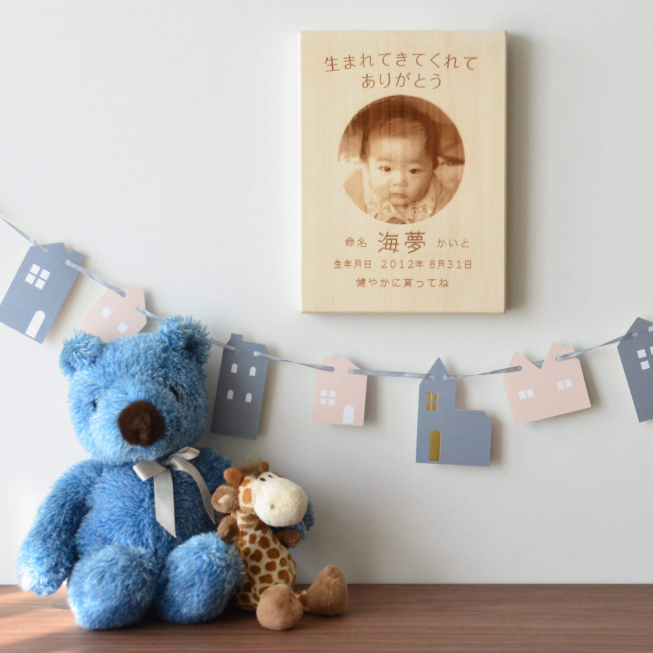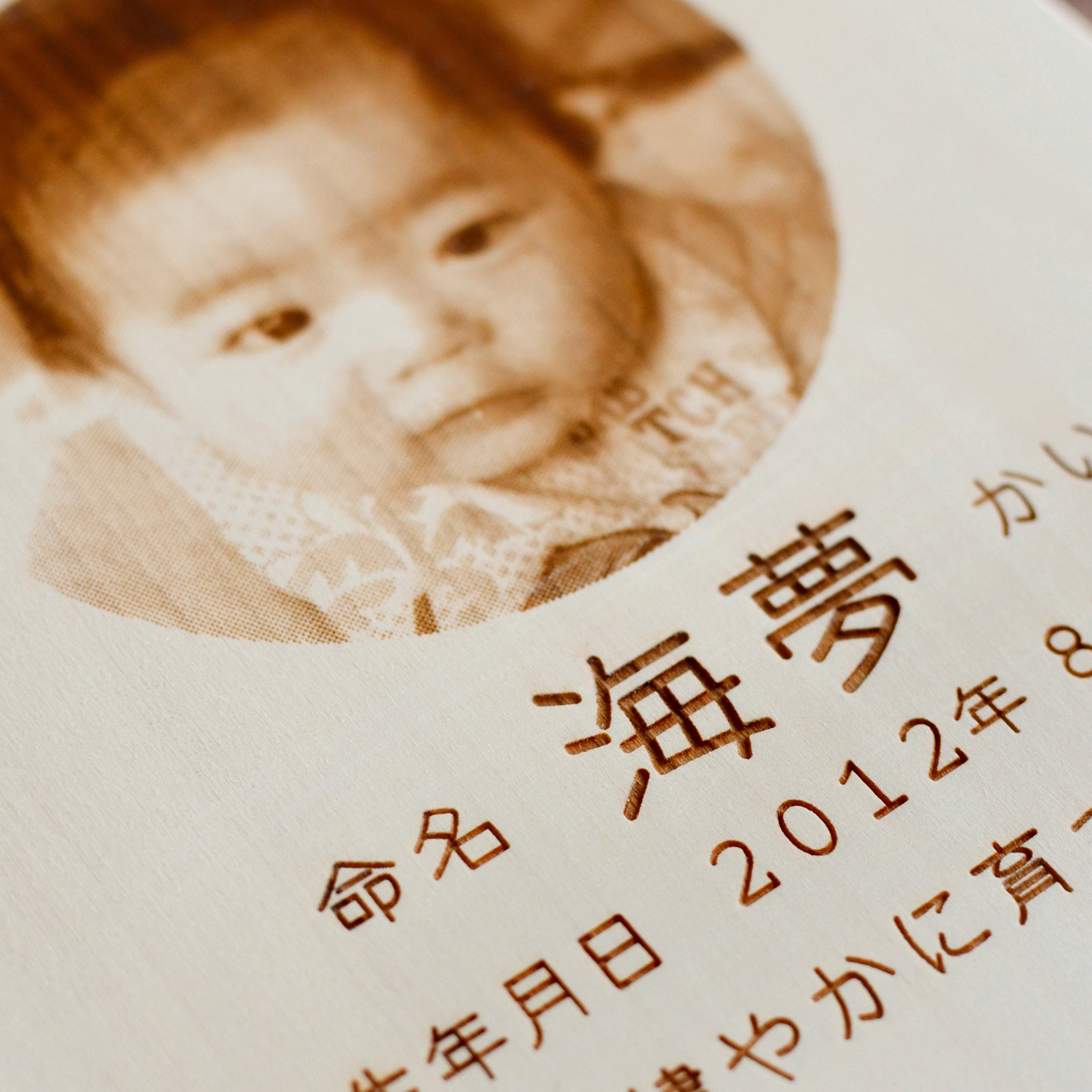 天然木にレーザー刻印を施した、ニューボーンボードです。