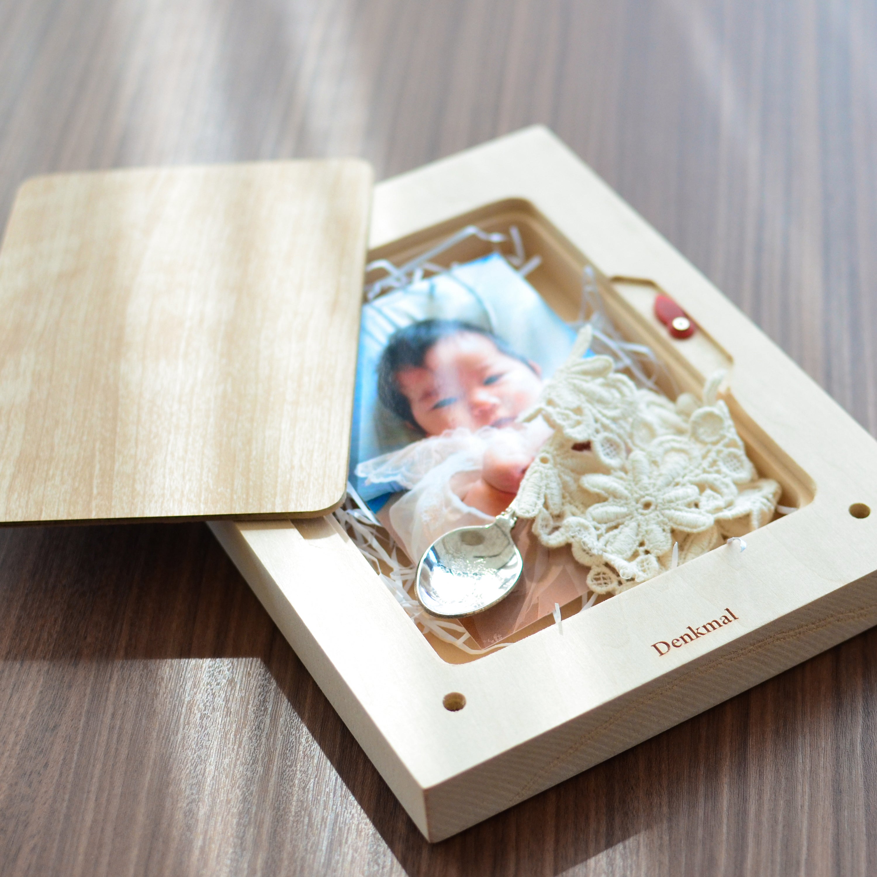 天然木は時が経つにつれ、味わい深い色合いに変化。レーザー刻印は色褪せることなく、いつまでも記念に残ります。