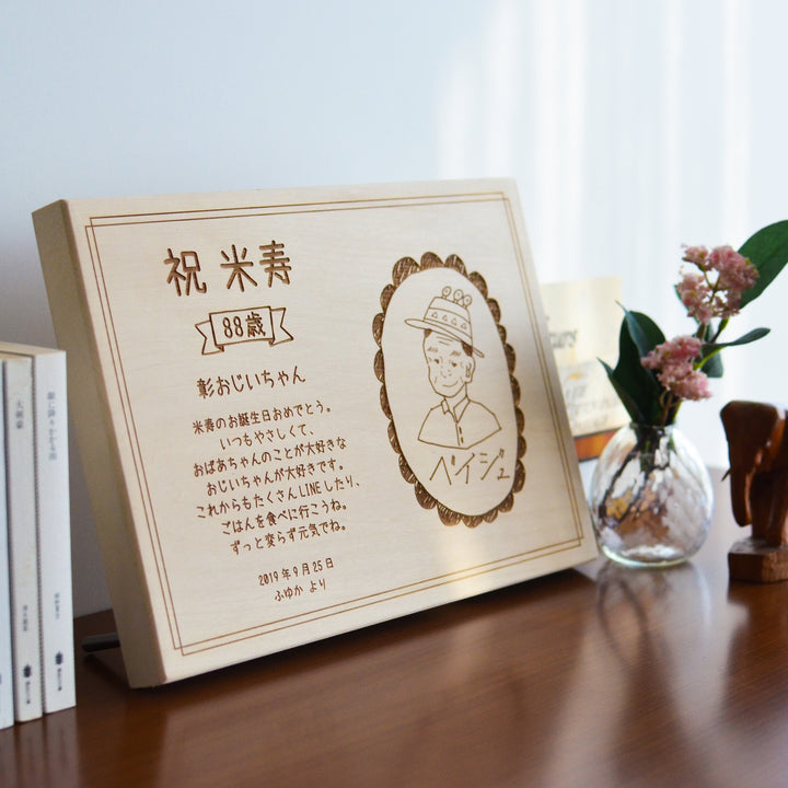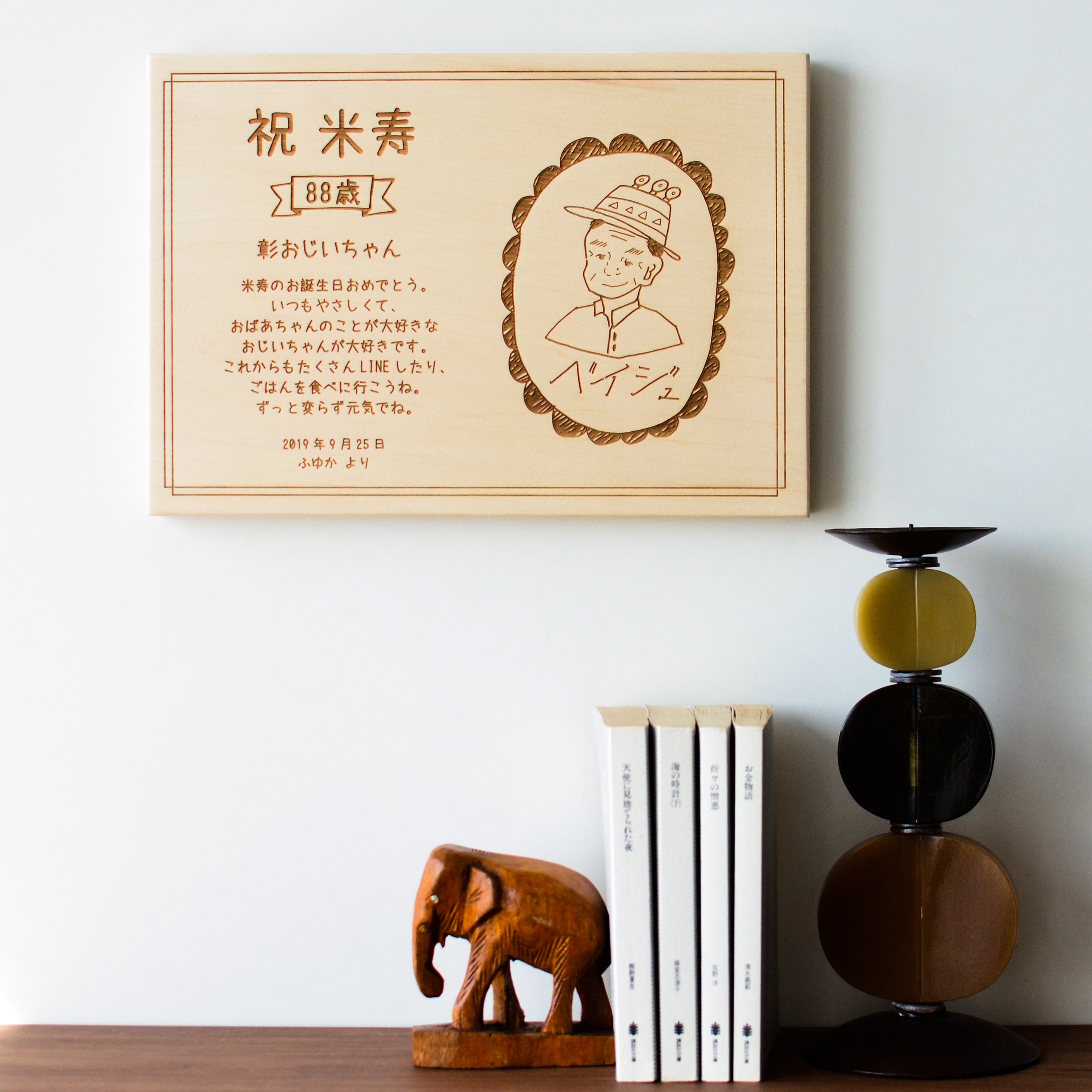 自由な発想で、世界に一つだけのオリジナルボードを作成いただけます。長寿やお誕生日などのお祝い、寄せ書きや表彰状のプレゼント、お子様の絵や手形足型など、様々な用途で製作可能。職人が一つ一つ心を込めて手作りいたします。大切な方へのプレゼントにも最適です。