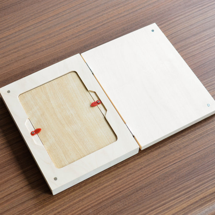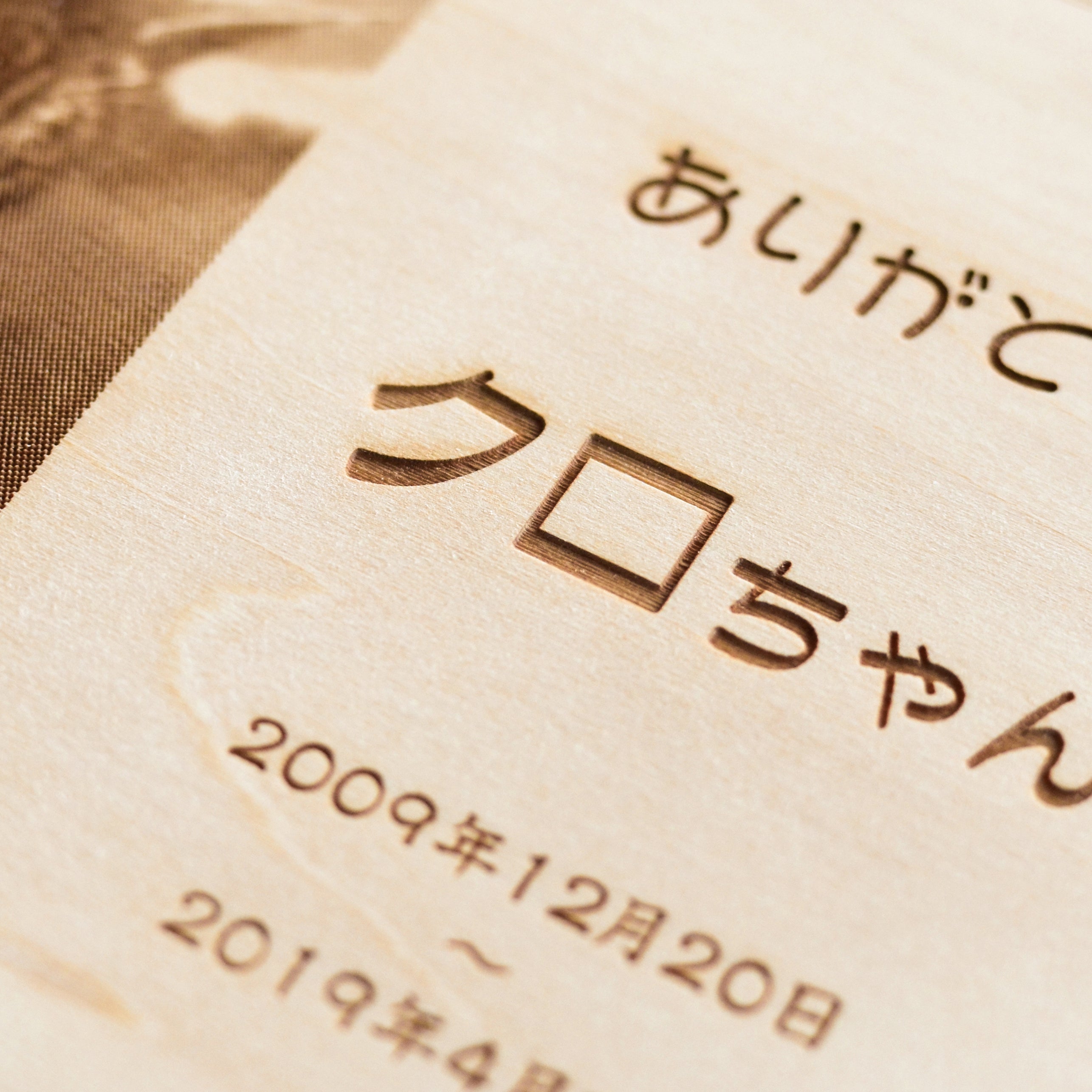 天然木にレーザー刻印を施した、立てて飾れるメモリアルボックスです。